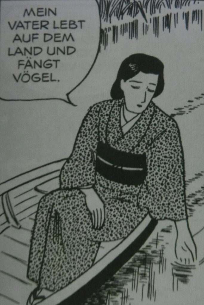 Nachdem die geschmückten Kühe das Dorf passiert und man ihre feuchten Hinterlassenschaften weggespült hatte, ging ich über die Hauptgasse und schaute mich im Bücherladen um. Ich suchte nichts Besonderes. Ein nachdenklich blickender Schwingerkönig forderte mich auf, gross zu träumen. Unten im Regal, knapp über dem Fussboden, viel mir ein dunkelviolettes Buch auf: Der nutzlose Mann von Yoshiharu Tsuge. Ich nahm das Buch, klappte es auf und las: HALT! Der nutzlose Mann ist ein Manga, der in japanischer Leserichtung veröffentlicht wird. Also drehte ich das Buch um und klappte das Cover von links nach rechts auf.